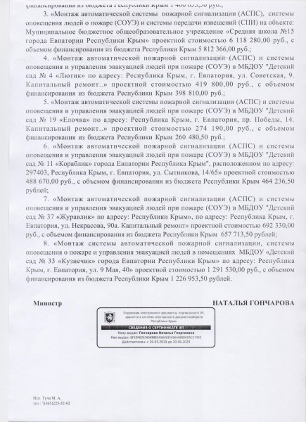 Постановление о закреплении муниципальных общеобразовательных и дошкольных образовательных учреждений за конкретными территориями муниципального образования городской округ Евпатория РК Документ подписан электронной подписью Серийный номер 726242342903868691666490759959119263676517201340 Директор Полисан Татьяна Александровна Дата подписания документа 12.02.2025 23:27:58 (скачать) (посмотреть) (текст документа)